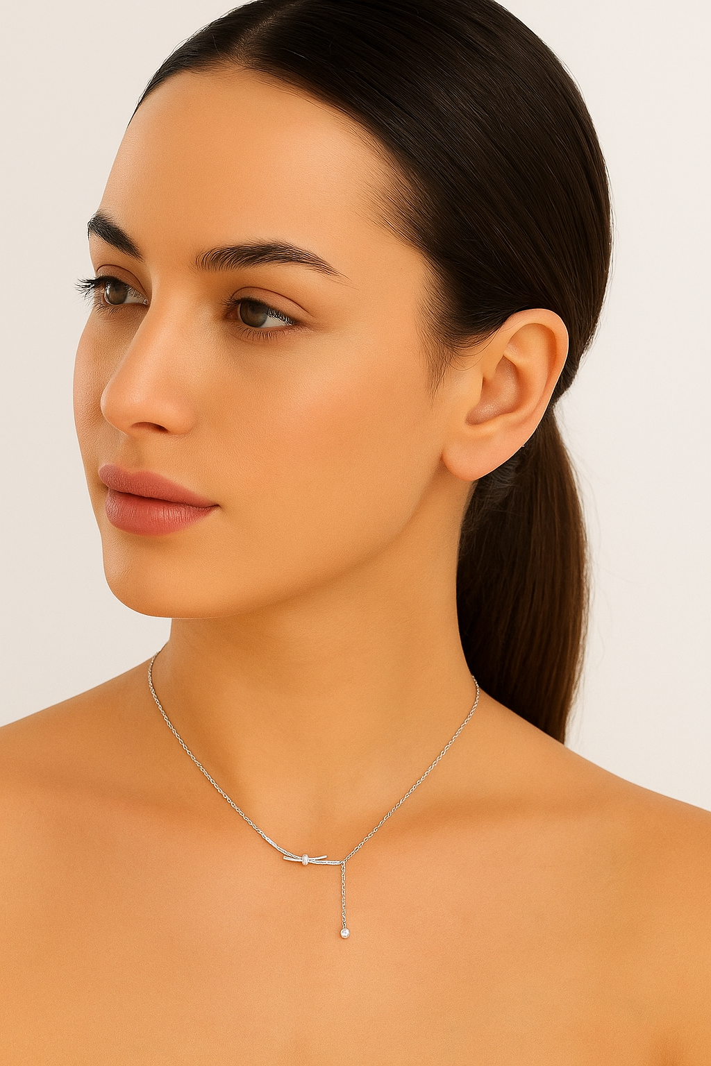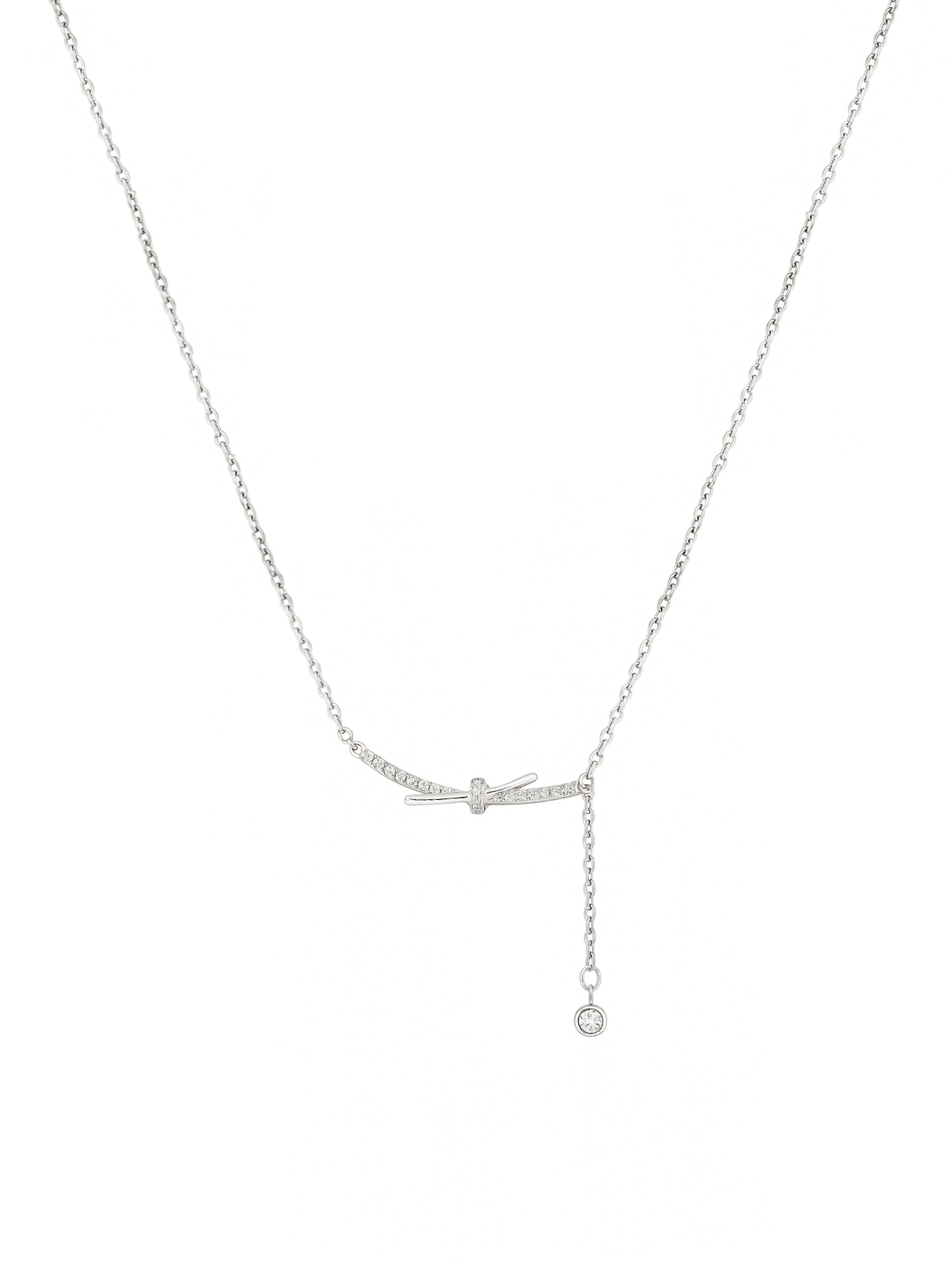 Bar Drop Knot Line 925 Sterling Silver Necklace For Women