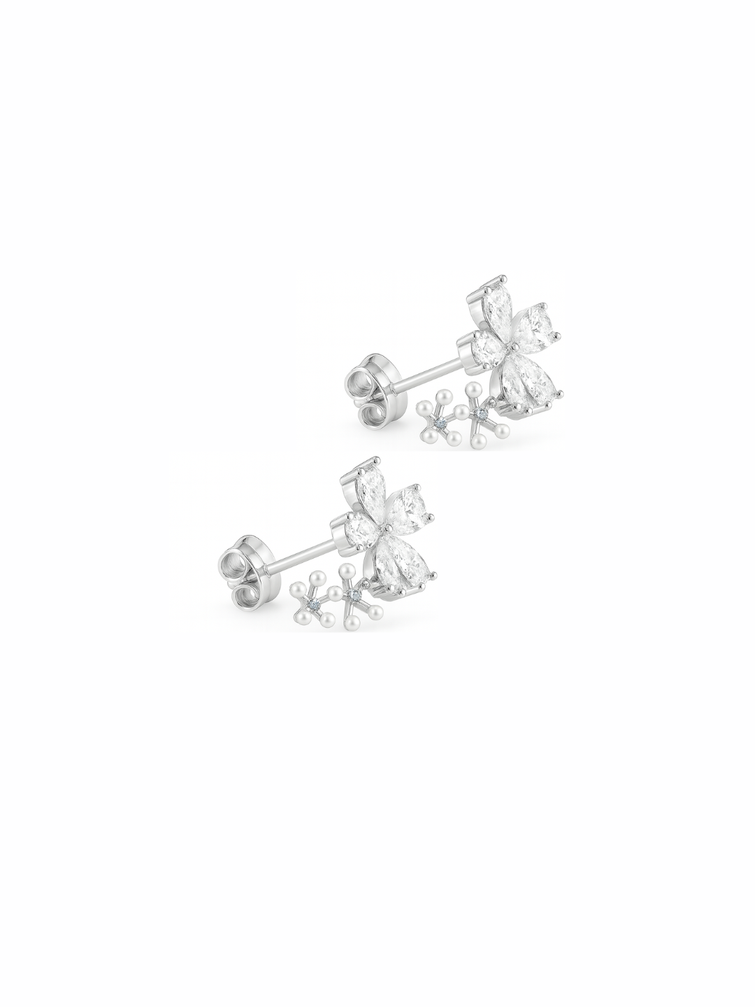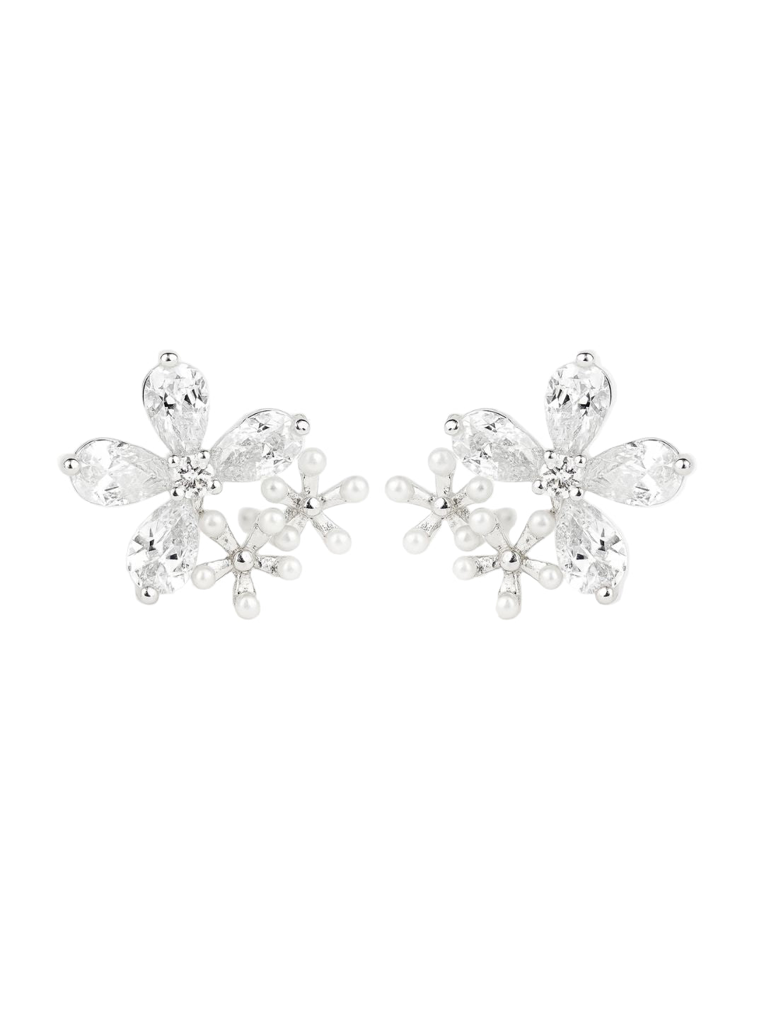 Three Pearl Blossom Floral 925 Sterling Silver Festive Studs Earrings