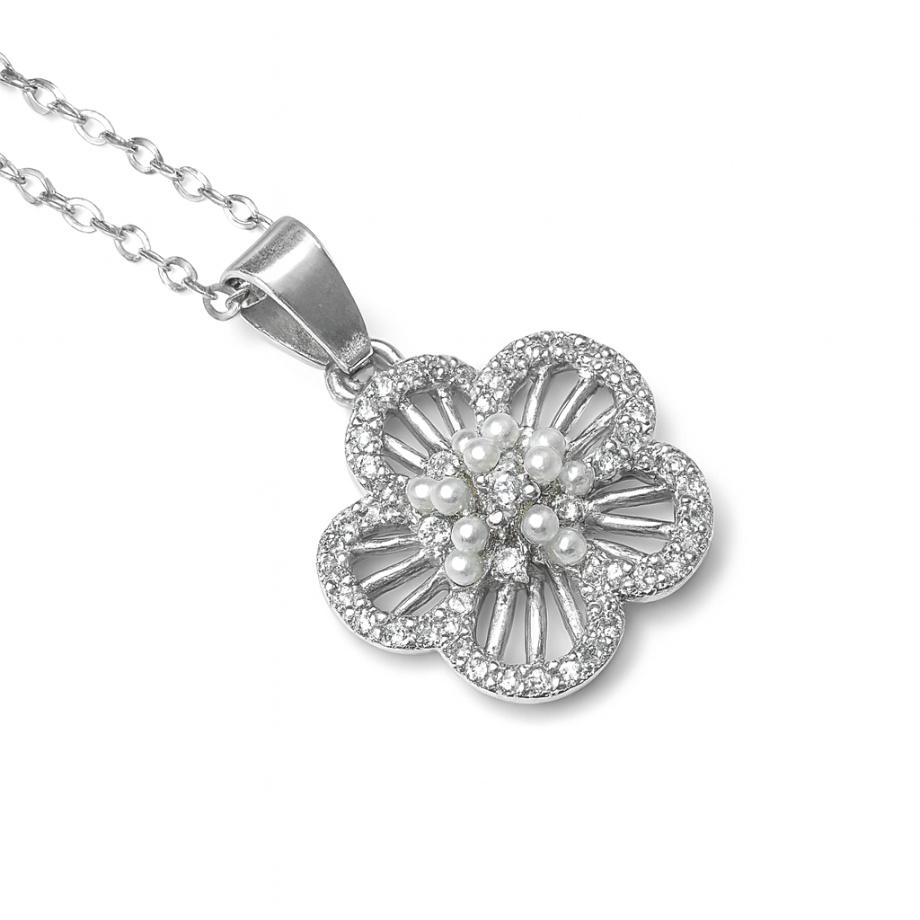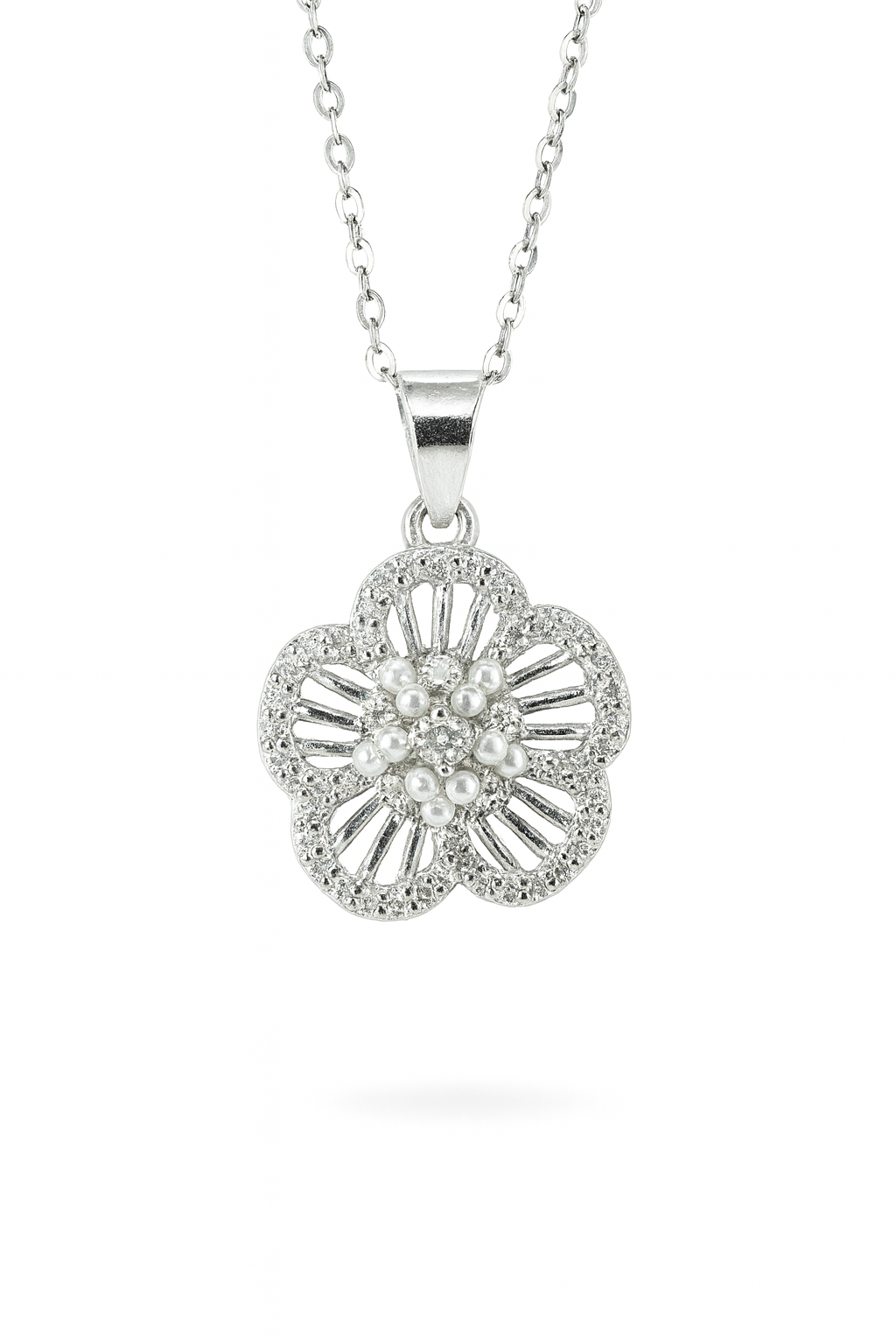 Radiant Blossom 925 Sterling Silver Floral Pendant with CZ Stones