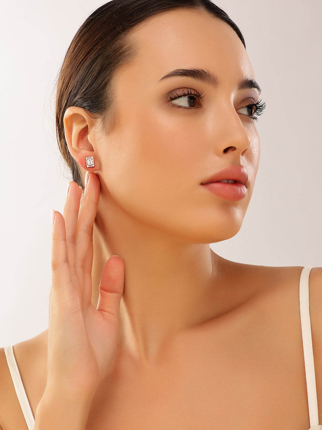 Rose Gold Baguette Rectangle Studs 925 Sterling Silver Earrings