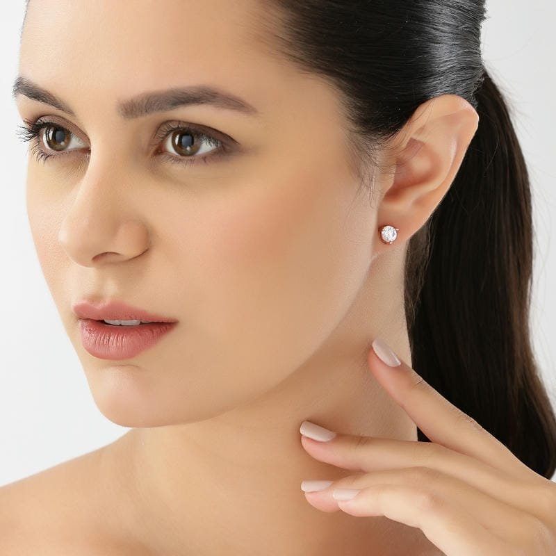 The Rose Gold Classic Round Single Solitaire 925 Sterling Silver Earrings is inspired by the real diamond Solitaire look for royal affairs.