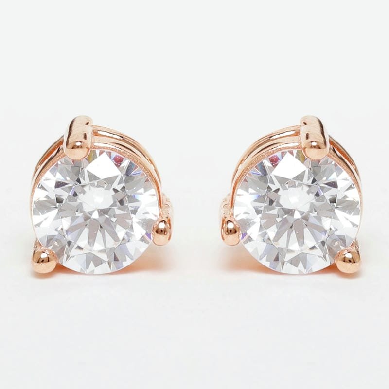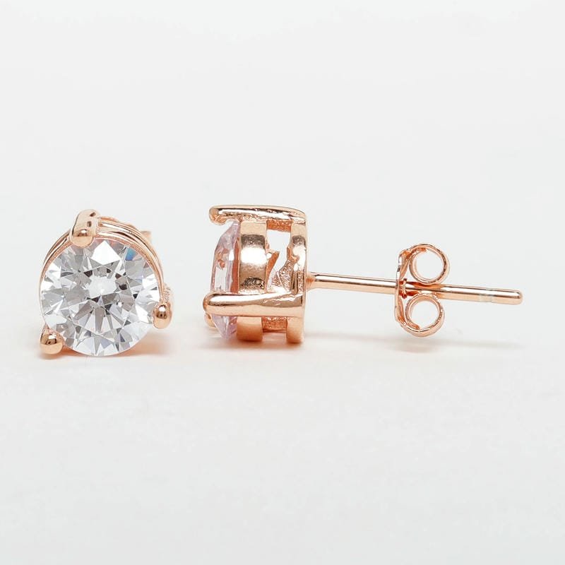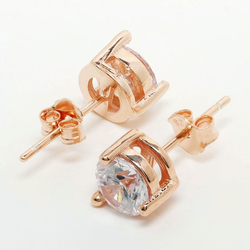 Rose Gold Classic Round Single Solitaire 925 Sterling Silver Earrings