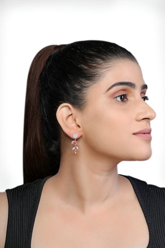 The Rose Gold Hanging Leaf Studds 925 Sterling Silver Earrings signifies the blossoming of purity and magnificent beauty within you