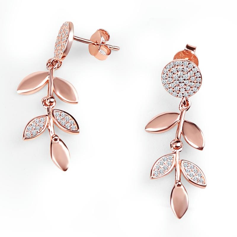 Rose Gold Hanging Leaf Studds 925 Sterling Silver Earrings