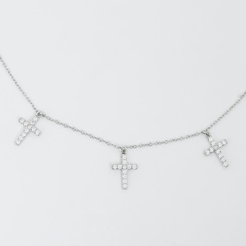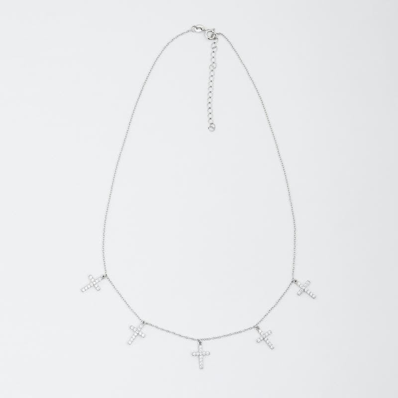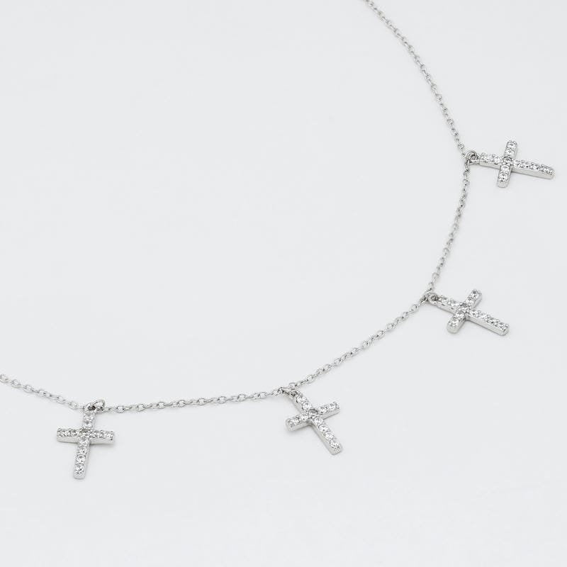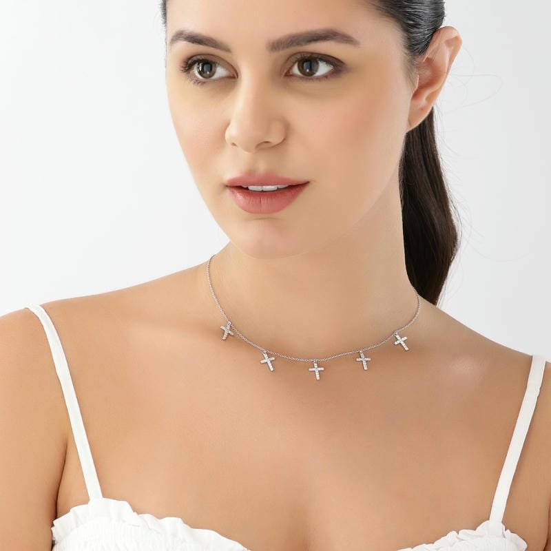 Rose Gold Holy Cross Studded Charm 925 Sterling Silver Necklace