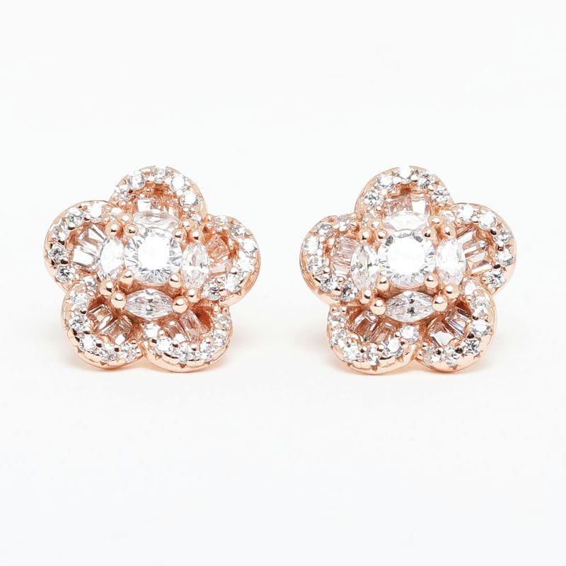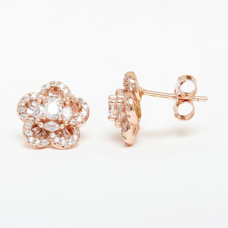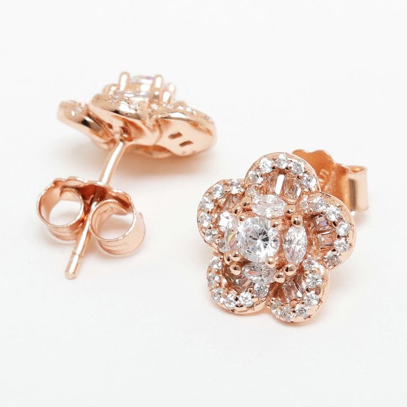 Rose Gold Lenten Rose Floral Studds 925 Sterling Silver Earrings