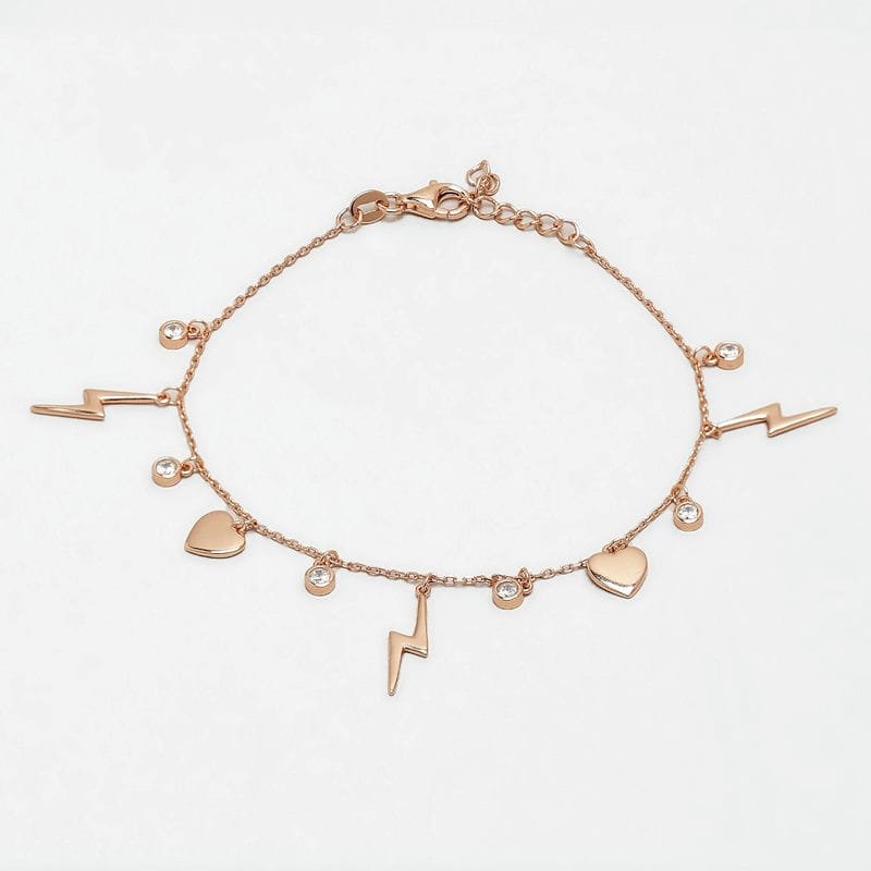 The Rose Gold Lightning Bolt Love Charm 925 Sterling Silver Bracelet is the portrayal of love and everlasting bond