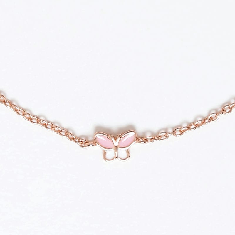 Rose gold Mini Pink Butterfly 925 sterling Silver Bracelet