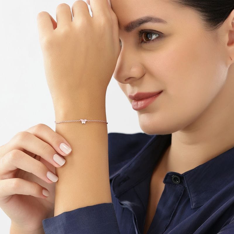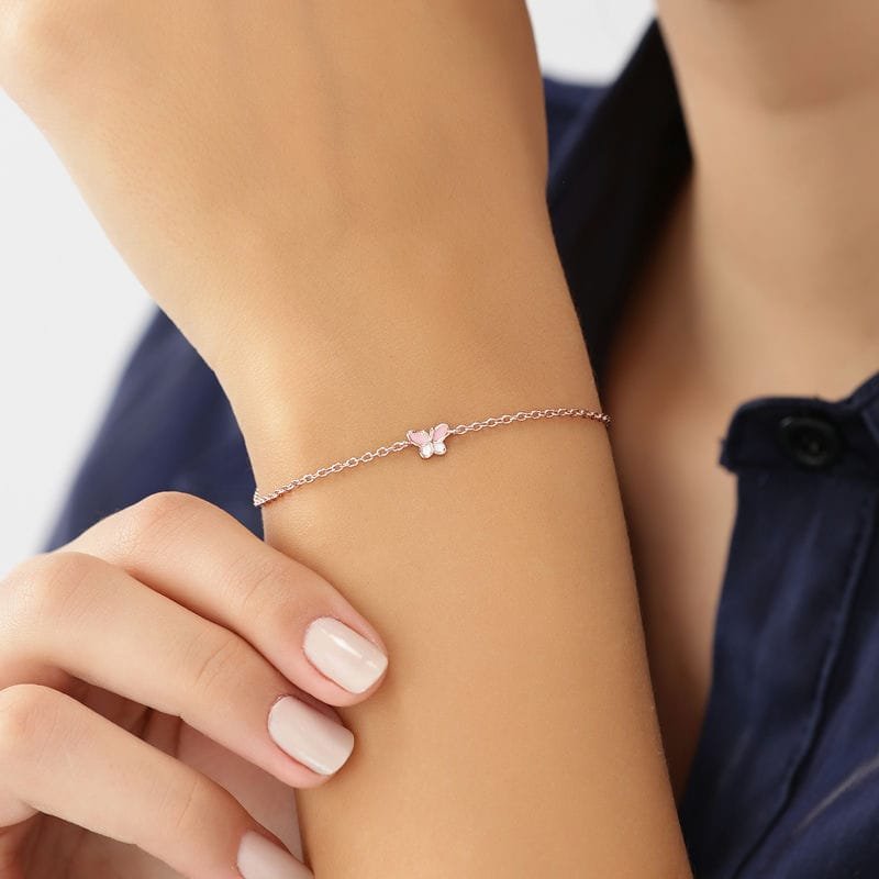 The Rose gold Mini Pink Butterfly 925 sterling Silver Bracelet is a symbol of your freedom and hope which lets you fly high