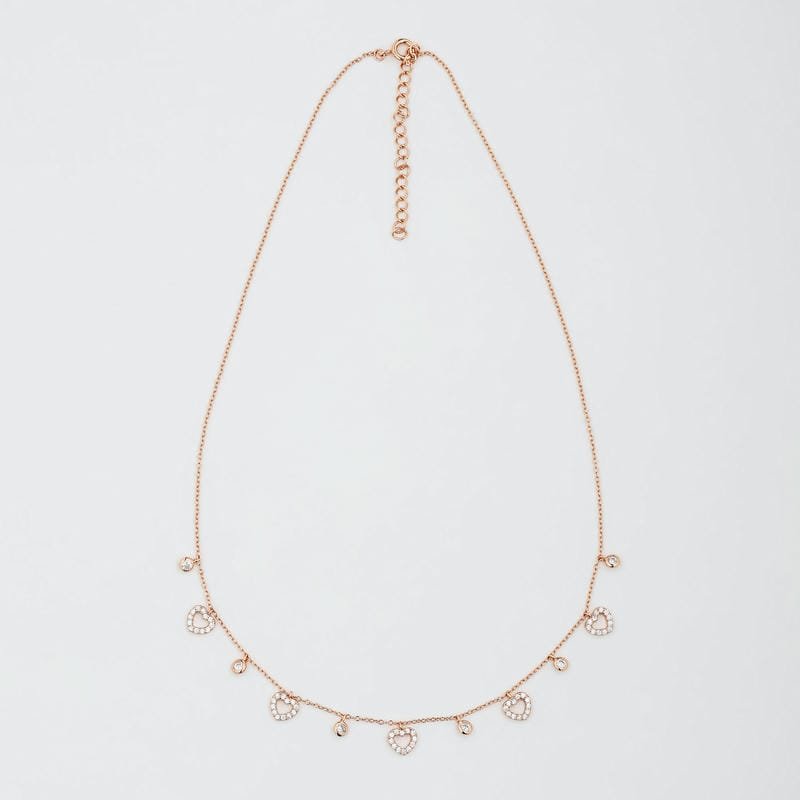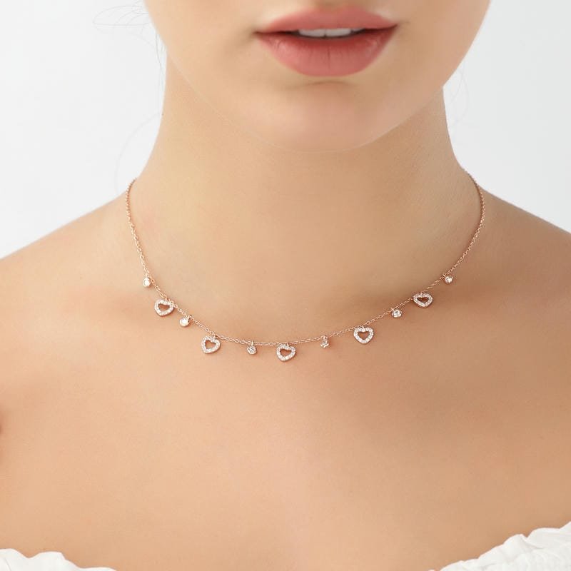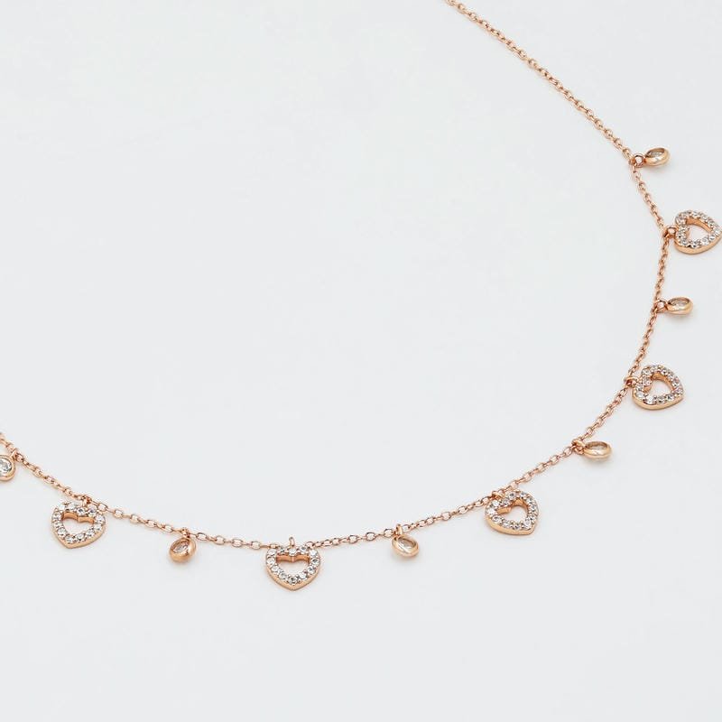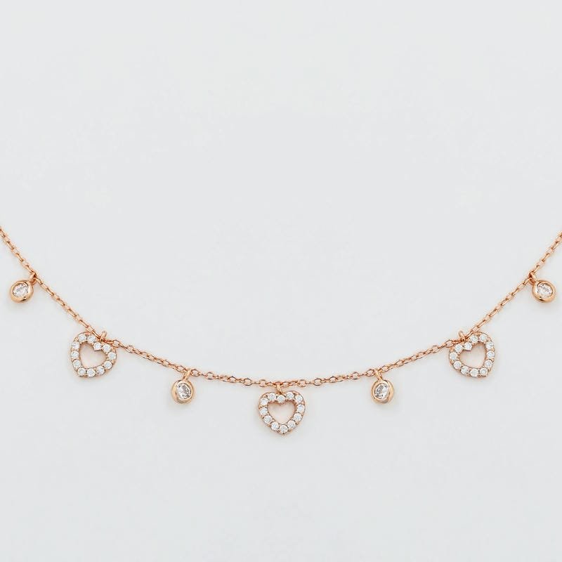Rose Gold Multi Studded Hearts Charm 925 Sterling Silver Necklace