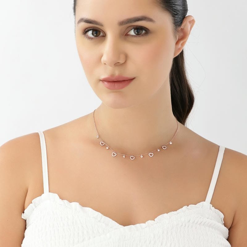 The Studded Three Heart Rose Gold 925 Sterling Silver Necklace is the portrayal of love and everlasting bond