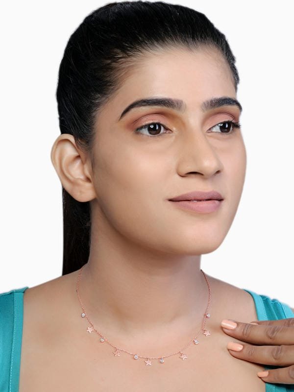 The Rose Gold Solid Stars Queen 925 Sterling Silver Necklace makes a bold statement, capturing the brilliance of celestial beauty in a timeless and elegant design.