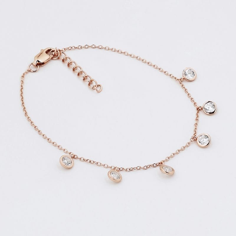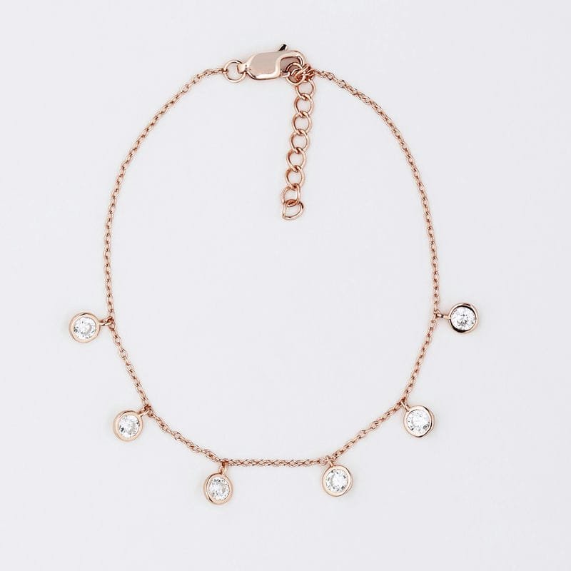 Rose gold Solitaire Circle Charms 925 Sterling Silver Bracelet