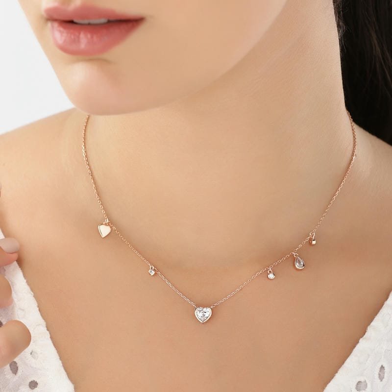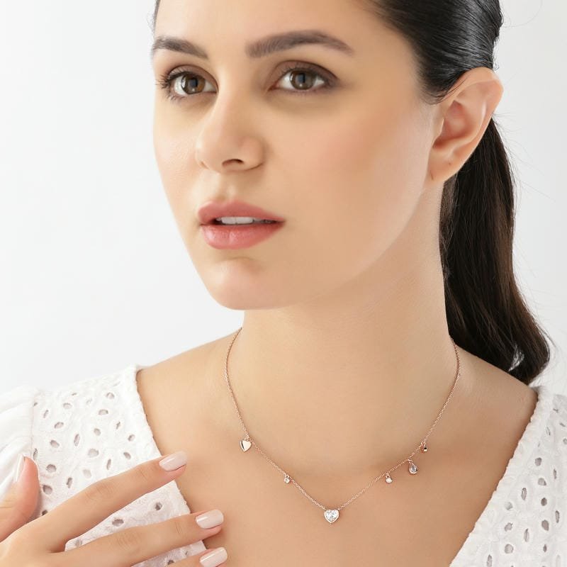 The Rose Gold Solitaire Love Charm 925 Sterling Silver Necklace is the portrayal of love and everlasting bond