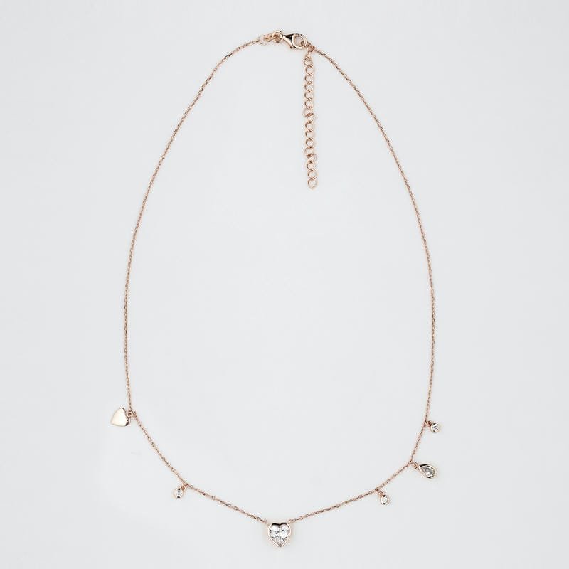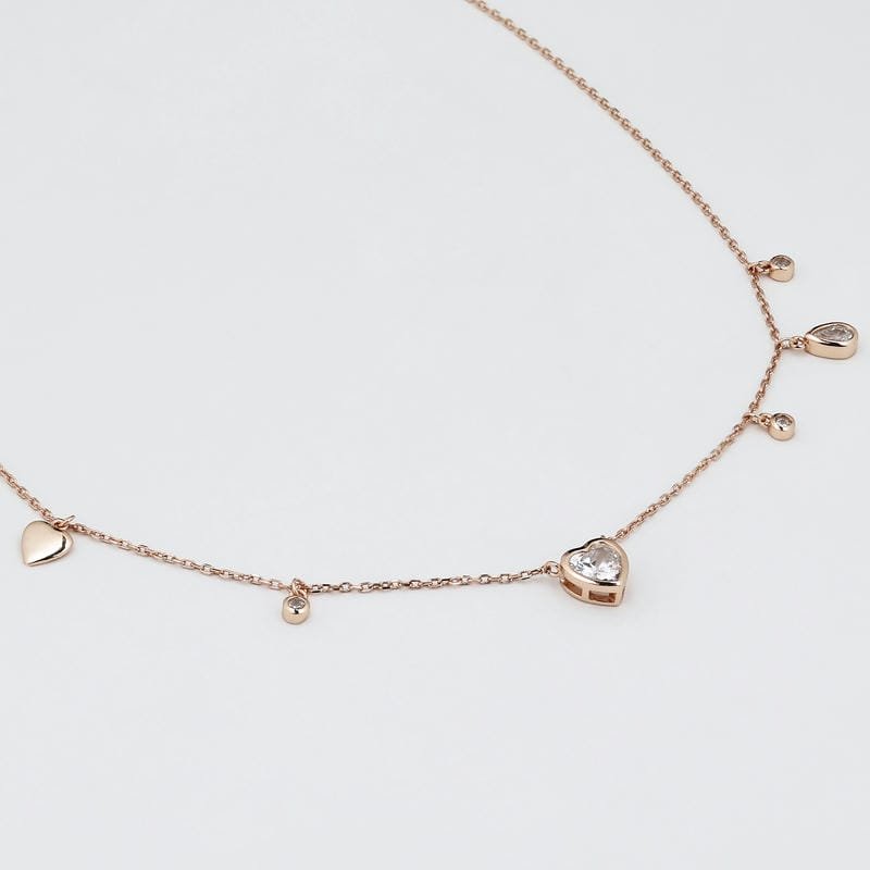 Rose Gold Solitaire Love Charm 925 Sterling Silver Necklace