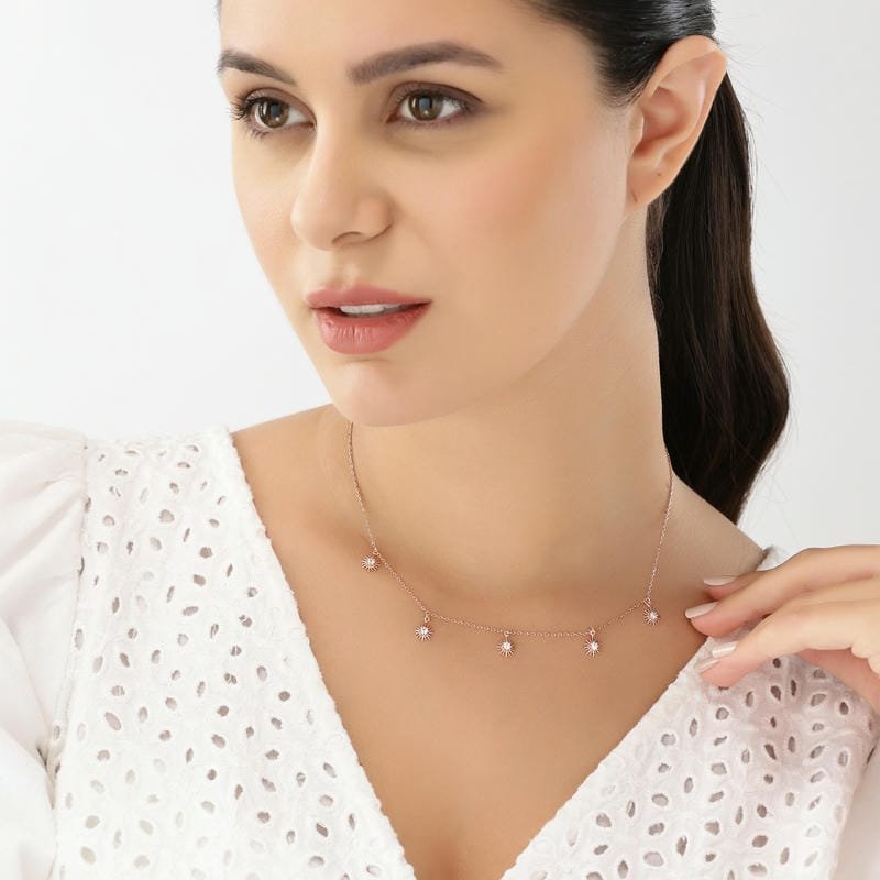 Rose Gold Sunshine Charms 925 Sterling Silver Necklace