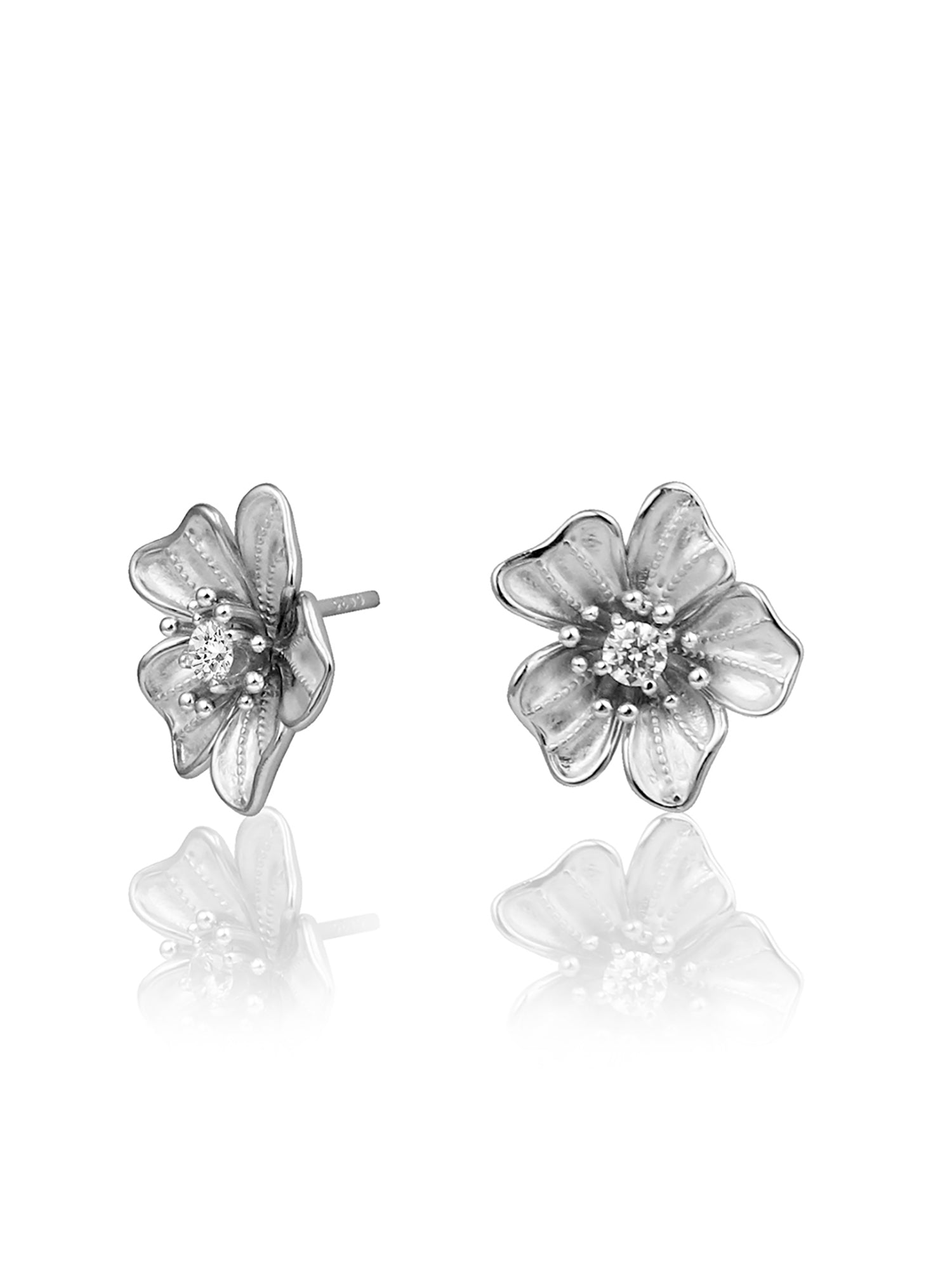 Silver Blossom Floral Studs 925 Sterling Silver Earrings