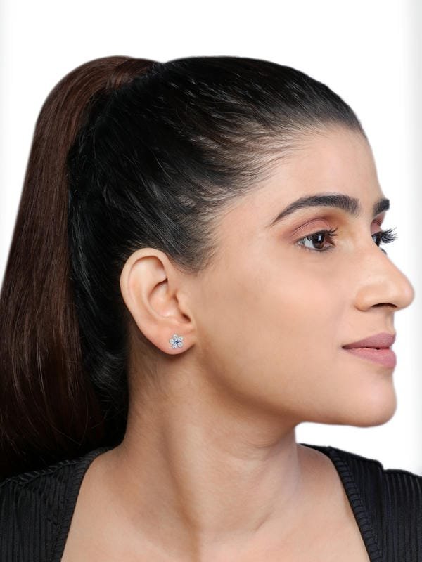 The Silver Blue Floral Studds 925 Sterling Silver Earrings signifies the blossoming of purity and magnificent beauty within you