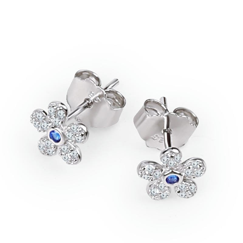 Silver Blue Floral Studds 925 Sterling Silver Earrings