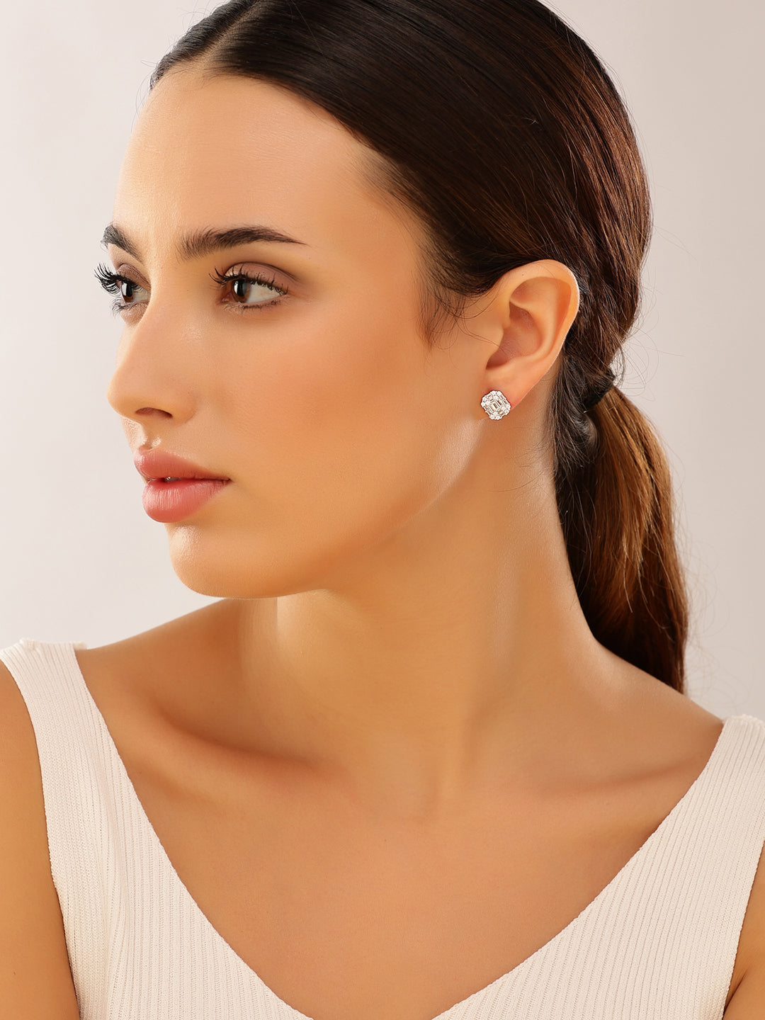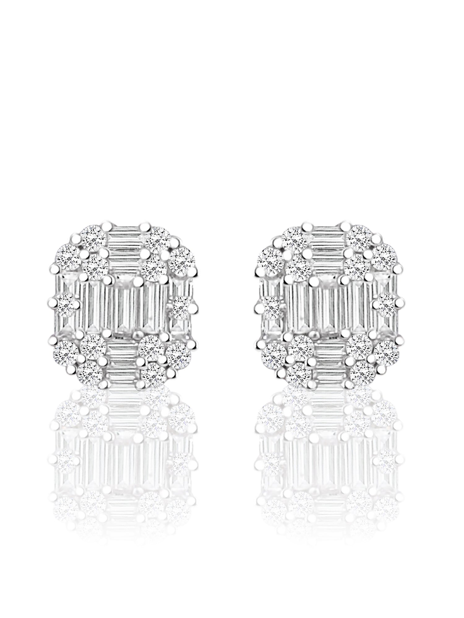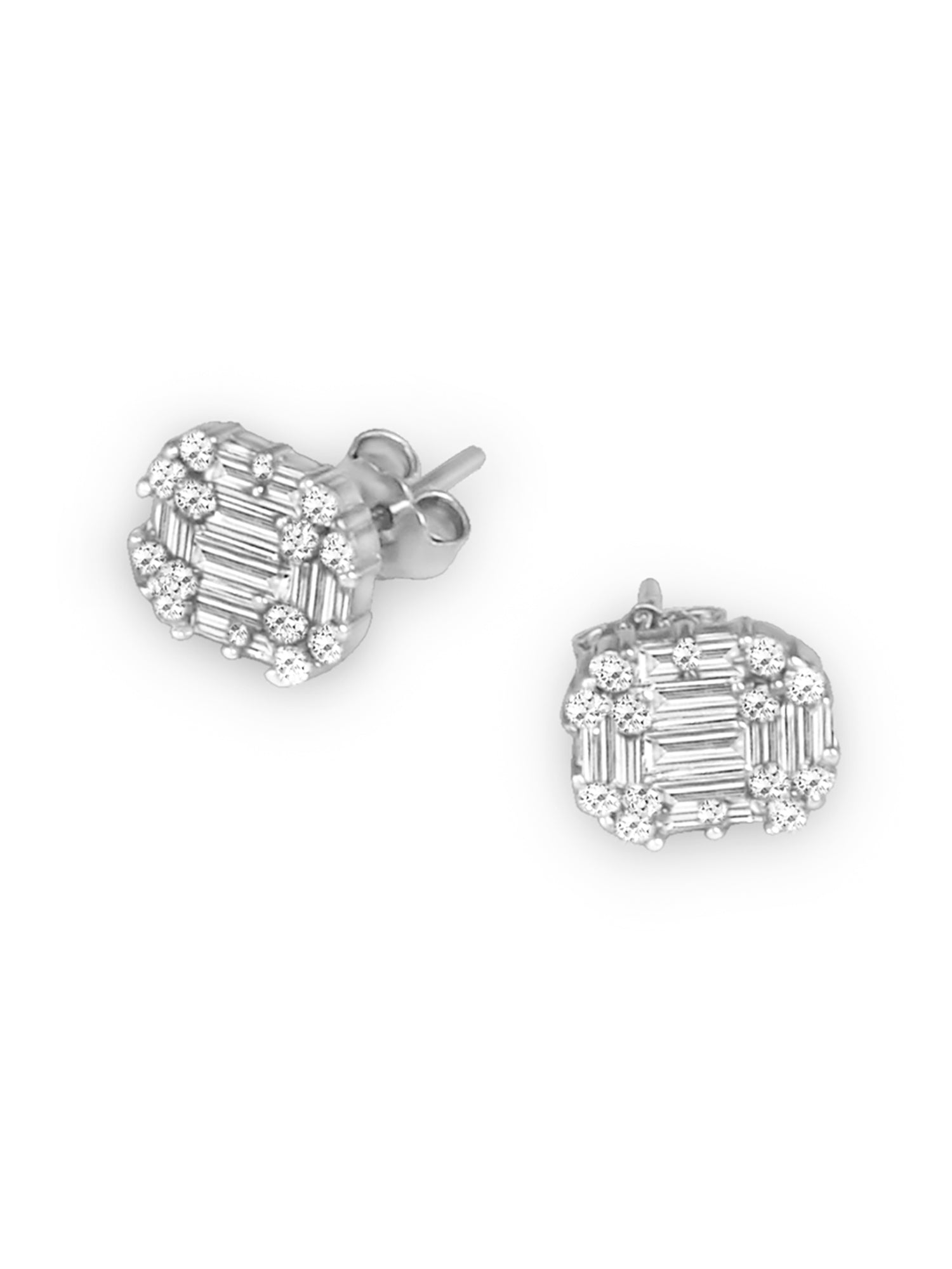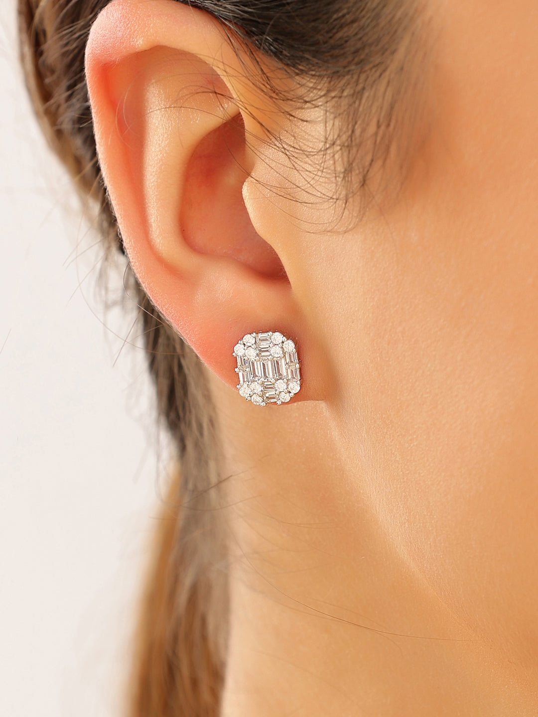 Silver Classic Rectangle Baguette Setting Studs 925 Sterling Silver Earrings