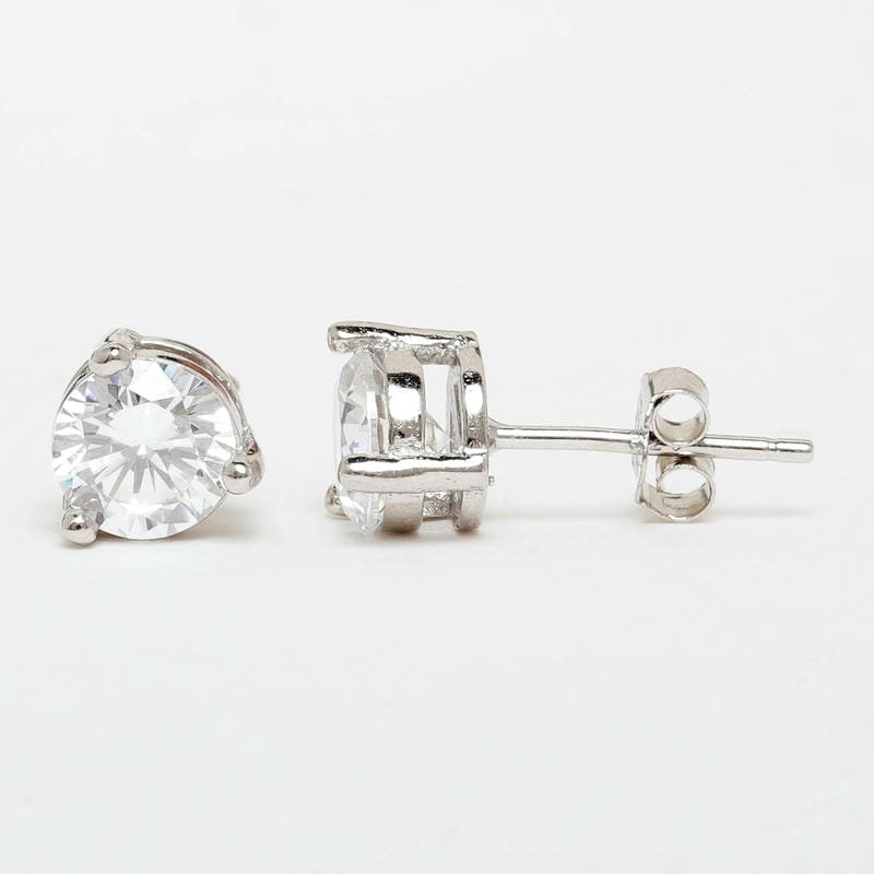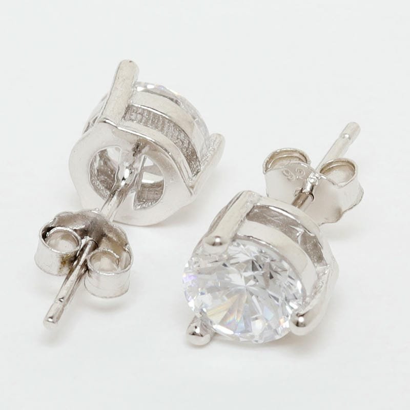 Silver Classic Round Single Solitaire 925 Sterling Silver Earrings