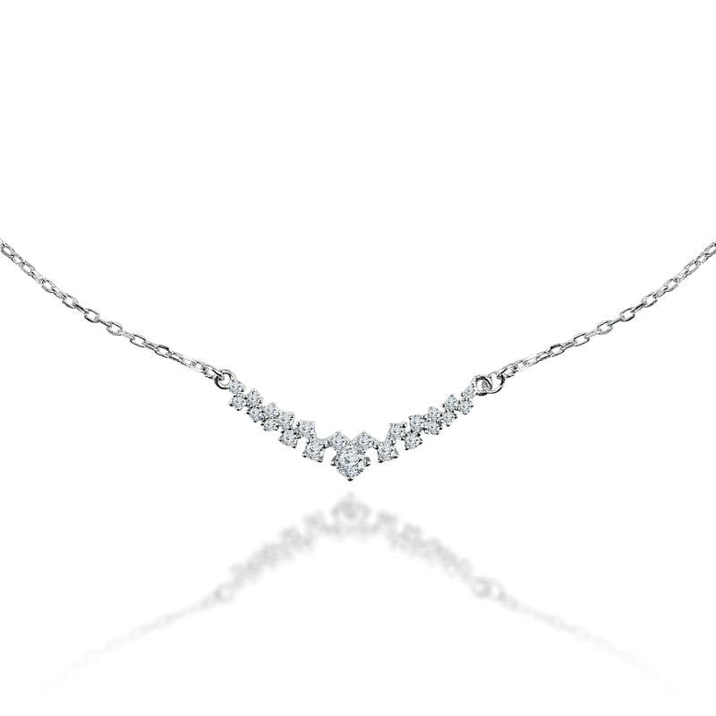 Silver Classic Studded V Chain Pendent 925 Sterling Silver Necklace