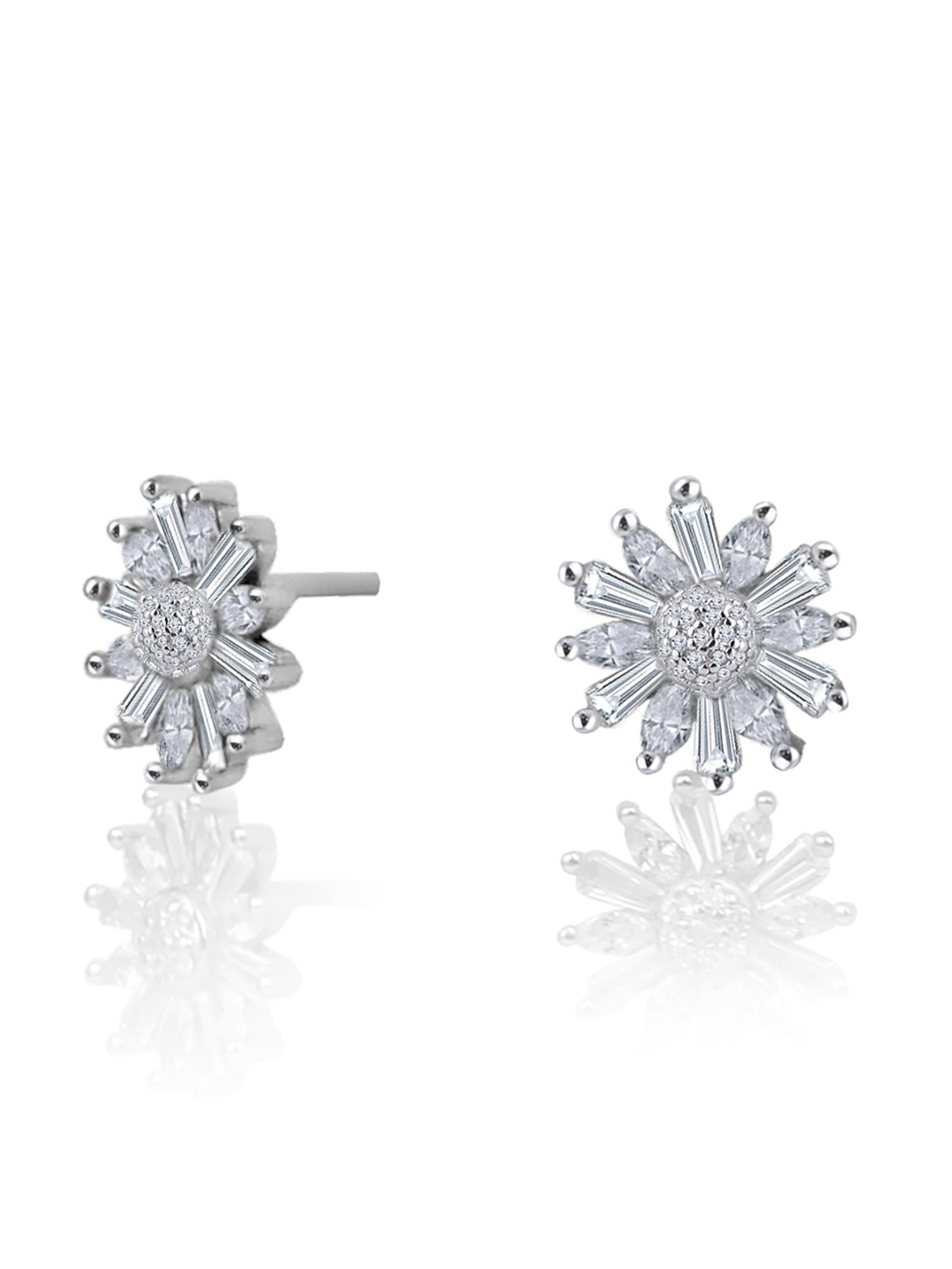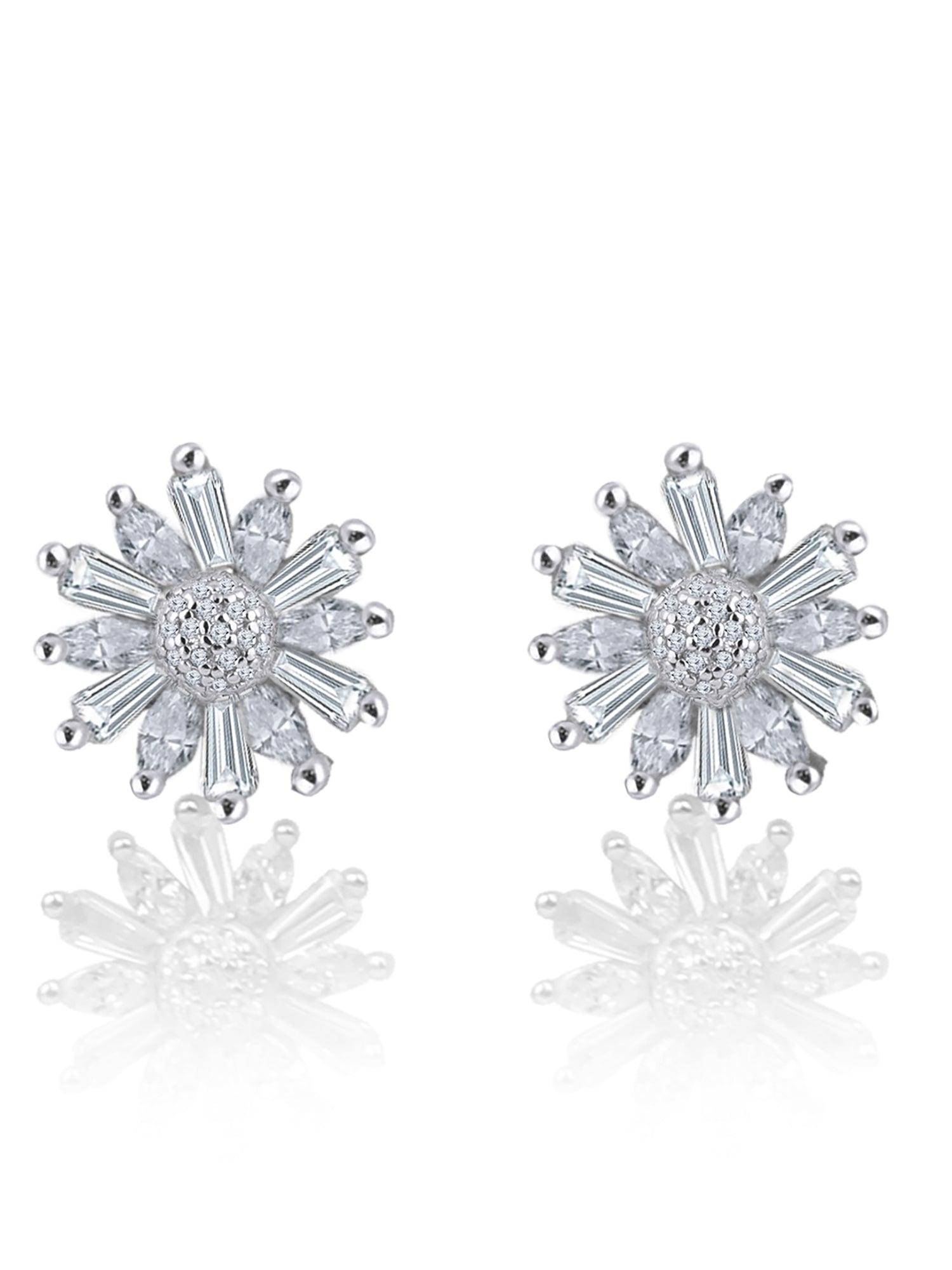 Silver Dazzling Floral Studs 925 Sterling Silver Earrings