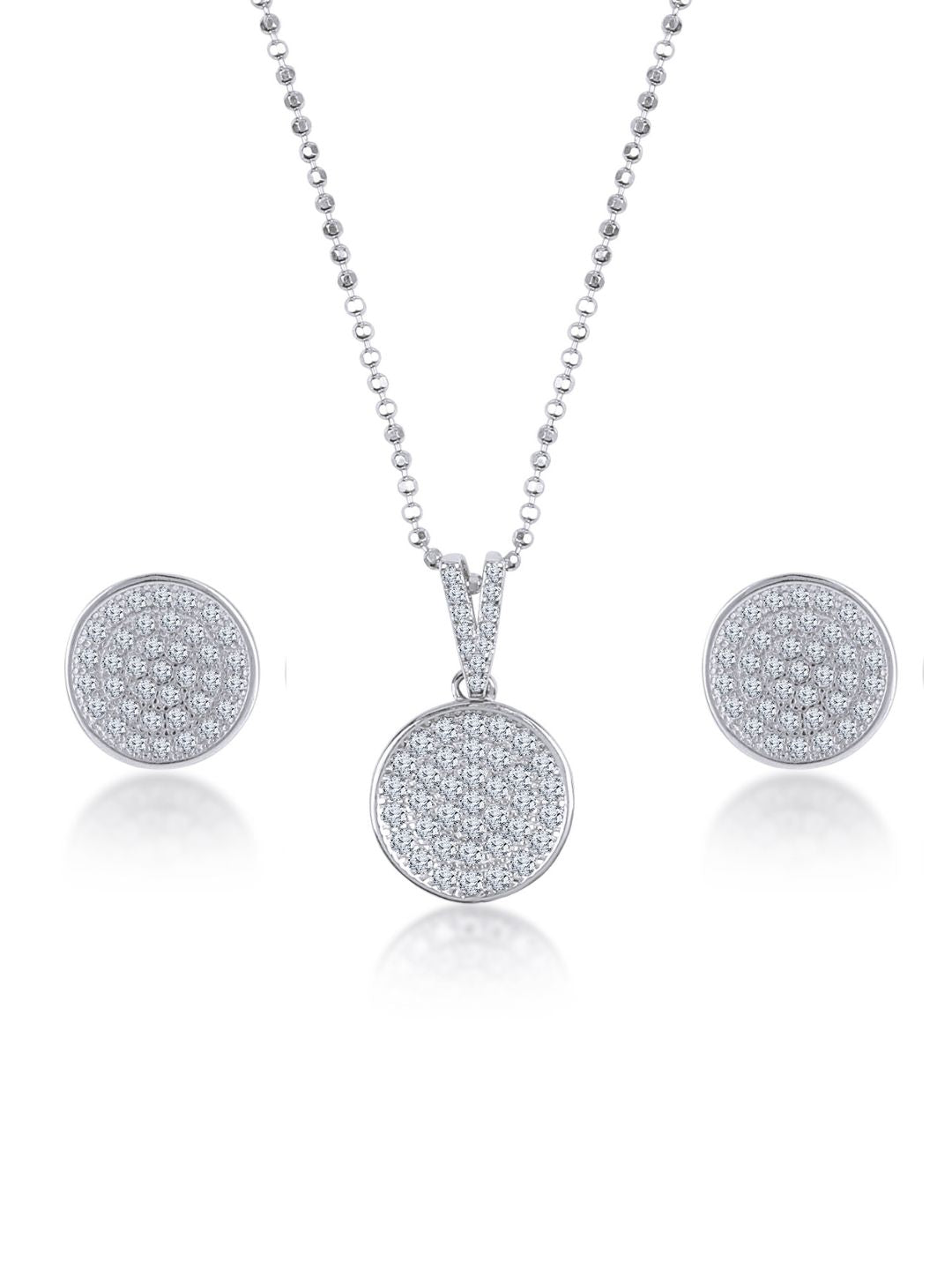 Silver Dazzling Round 925 Sterling Silver Necklace and Earring Set