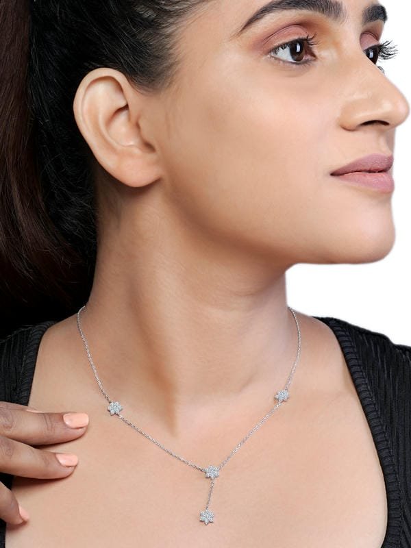 The Floral Drop Y 925 Sterling Silver Necklace signifies the blossoming of purity and magnificent beauty within you
