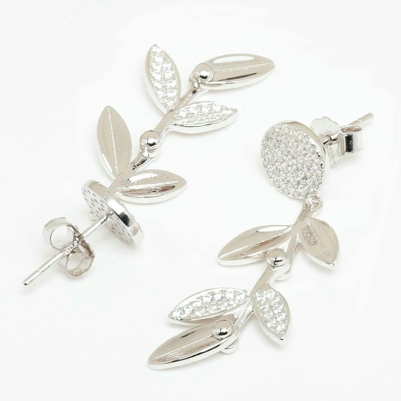 Silver Hanging Leaf Studds 925 Sterling Silver Earrings