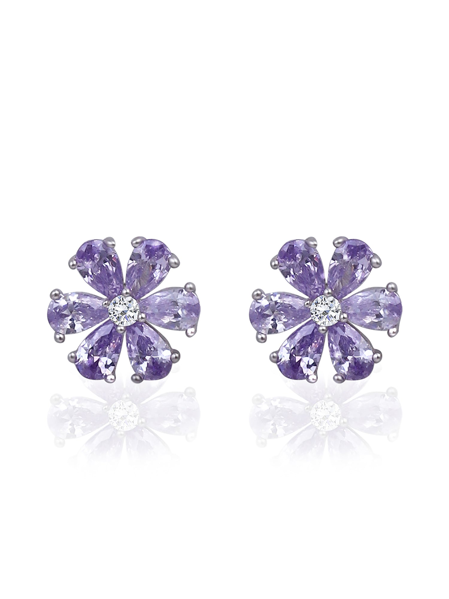 Silver Lavander Floral Studs 925 Sterling Silver Earrings