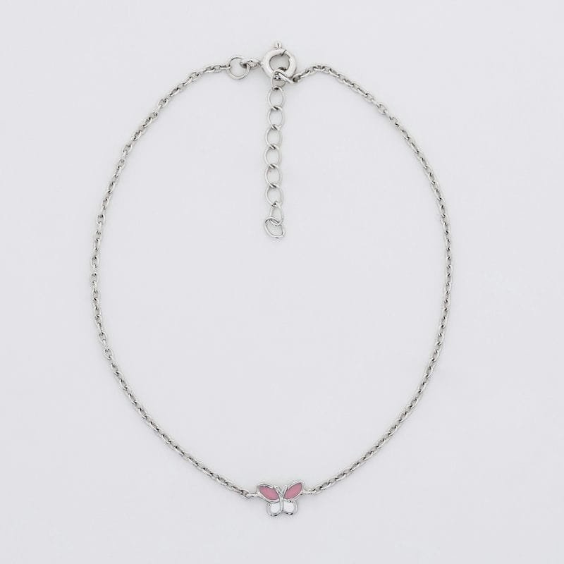 Silver Mini Pink Butterfly 925 sterling Silver Bracelet