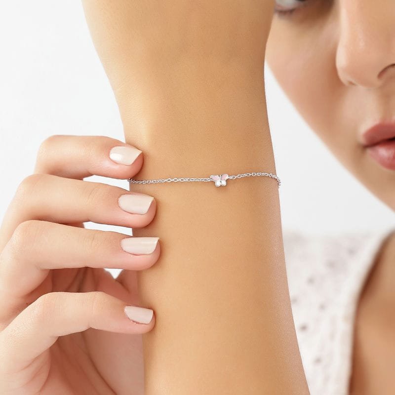 The Silver Mini Pink Butterfly 925 sterling Silver Bracelet is a symbol of your freedom and hope which lets you fly high