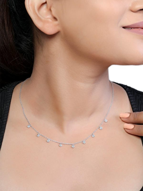 Silver Mini Solitaire Charm 925 Sterling Silver Necklace