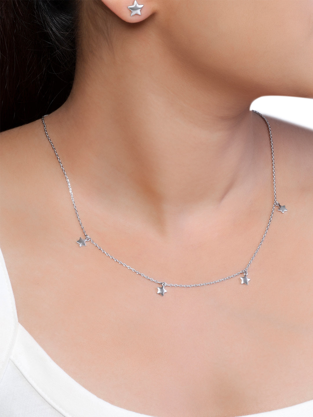 Silver Shining Stars 925 Sterling Silver Necklace and Earring Set