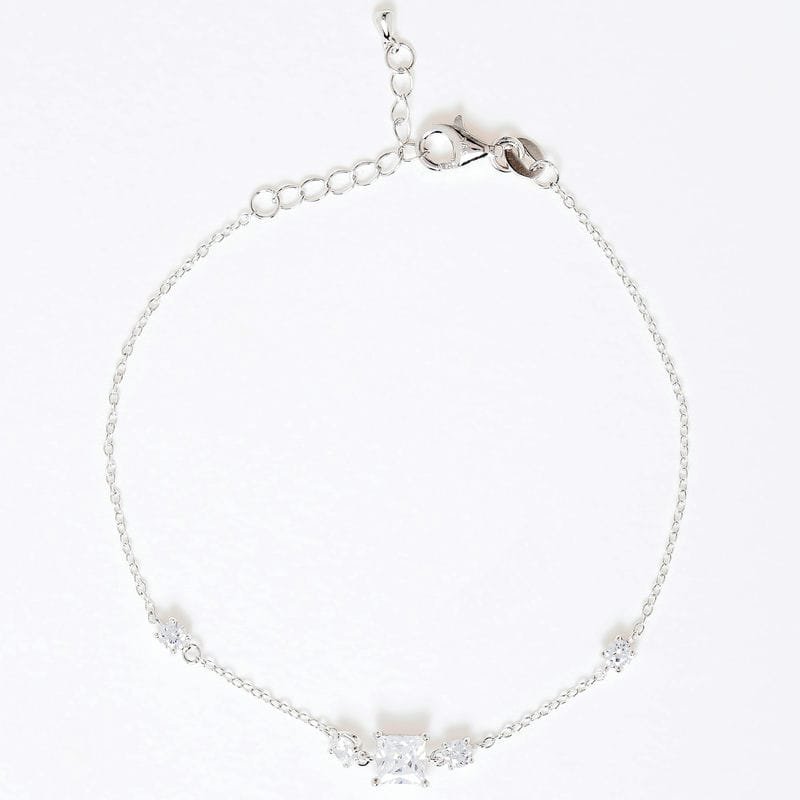 Silver Sparkling Square Cut Solitaire 925 Sterling Silver Bracelet