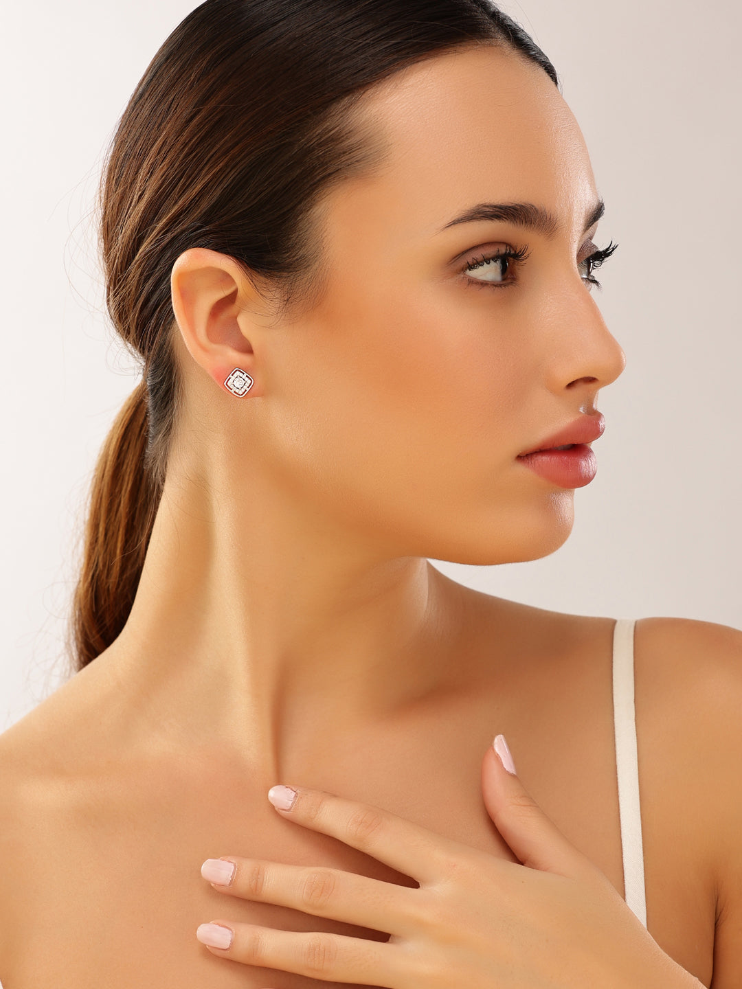 Silver Square Studded studs 925 Sterling Silver Earrings