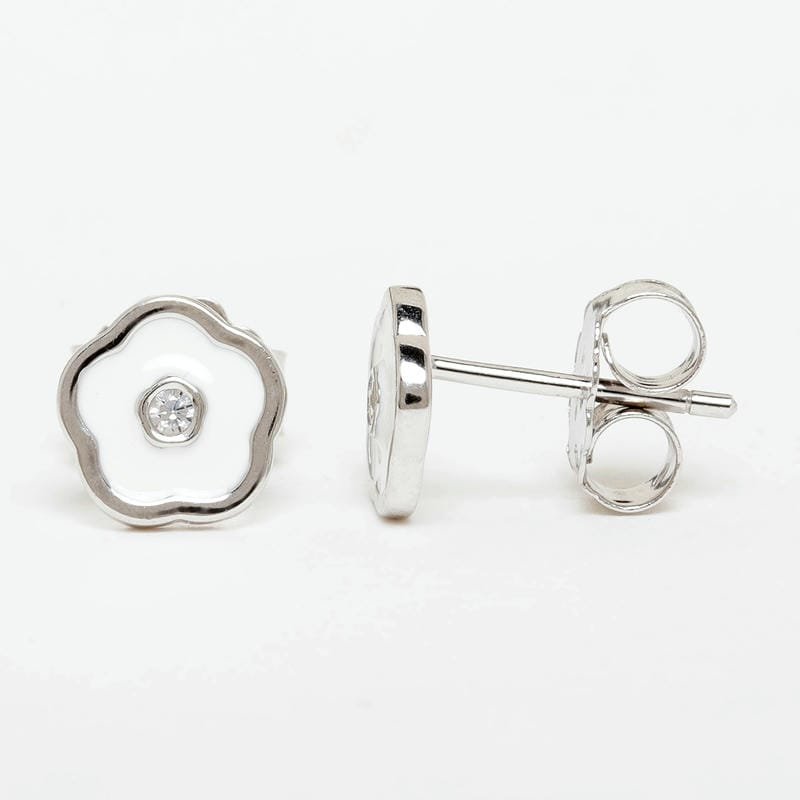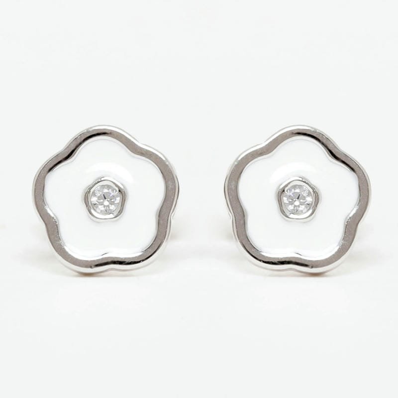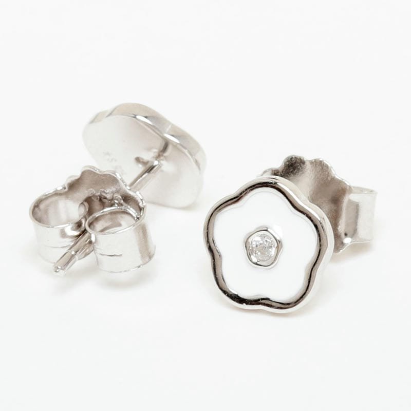 Silver White Enamel Floral Studds 925 Sterling Silver Earrings